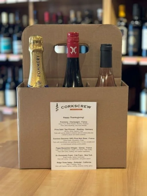 You loved this last year, so Corkscrew is bringing it back!! Erin & Preston have each selected six wines to perfectly pair with your Thanksgiving gathering. These wines will satisfy your need for morning bubbles, wine to drink while you cook, pairings for even the most finnicky Thanksgiving sides, and bottles to carry you through the holiday weekend! Pick up Erin’s selections, Preston’s picks, or take all 12 for the perfect Thanksgiving.
